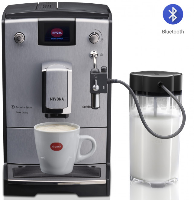 Integrované Bluetooth pro pohodlné ovládání pomocí aplikace. Díky Bluetooth připojení můžete přístroj ovládat pomocí chytrého telefonu nebo tabletu, sledovat statistiku, nebo měnit nastavení nápojů. Stačí si bezplatně stáhnout aplikaci Nivona App, spárovat zařízení s Vaším plně automatickým kávovarem a ovládání na dálku je připravené.
