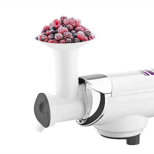 * Příslušenství ke kuchyňskému robotu Gratus Kuliner (ETA 0038), Gratus (ETA 0028), Gratussino (ETA 0023), Gustus (ETA 0128), Meno/Mezo (ETA 0030/ETA 0033) a mlýnku na maso Ambo ETA 2075 * Umožňuje rychlou a kvalitní výrobu výborné domácí zmrzliny, ledového krému a mraženého jogurtu * Zmrzlinu (a další produkty) si můžete osladit i ozdobit dle vlastní chuti a fantazie nebo vyrobit bio zmrzlinu z vlastních surovin * Maximálně šetrný ke zpracovávanému ovoci * Spirálový podavač z vysoce pevného plastu * 36 ks nerezových nožů zpracovávající suroviny na jemnou konzistenci * Plnicí otvor umožňuje vkládat velké kusy surovin * Pěchovadlo * Násypka * Vysoká bezpečnost * Jednoduché a rychlé sestavení * Snadná údržba díky kompletně rozebíratelnému mechanismu * Možnost mytí jednotlivých dílců v myčce na nádobí