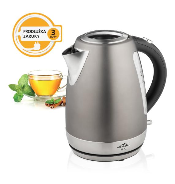 Konvice ETA Ela disponuje elegantně tvarovanou výlevkou a průhledným víkem. Uvedení do provozu je velmi snadné, po naplnění konvice a zaklapnutí víka ji jednoduše spustíte tlačítkem umístěným ve spodní části konvice. Činnost varné konvice signalizuje rozsvícení kontrolního světla.