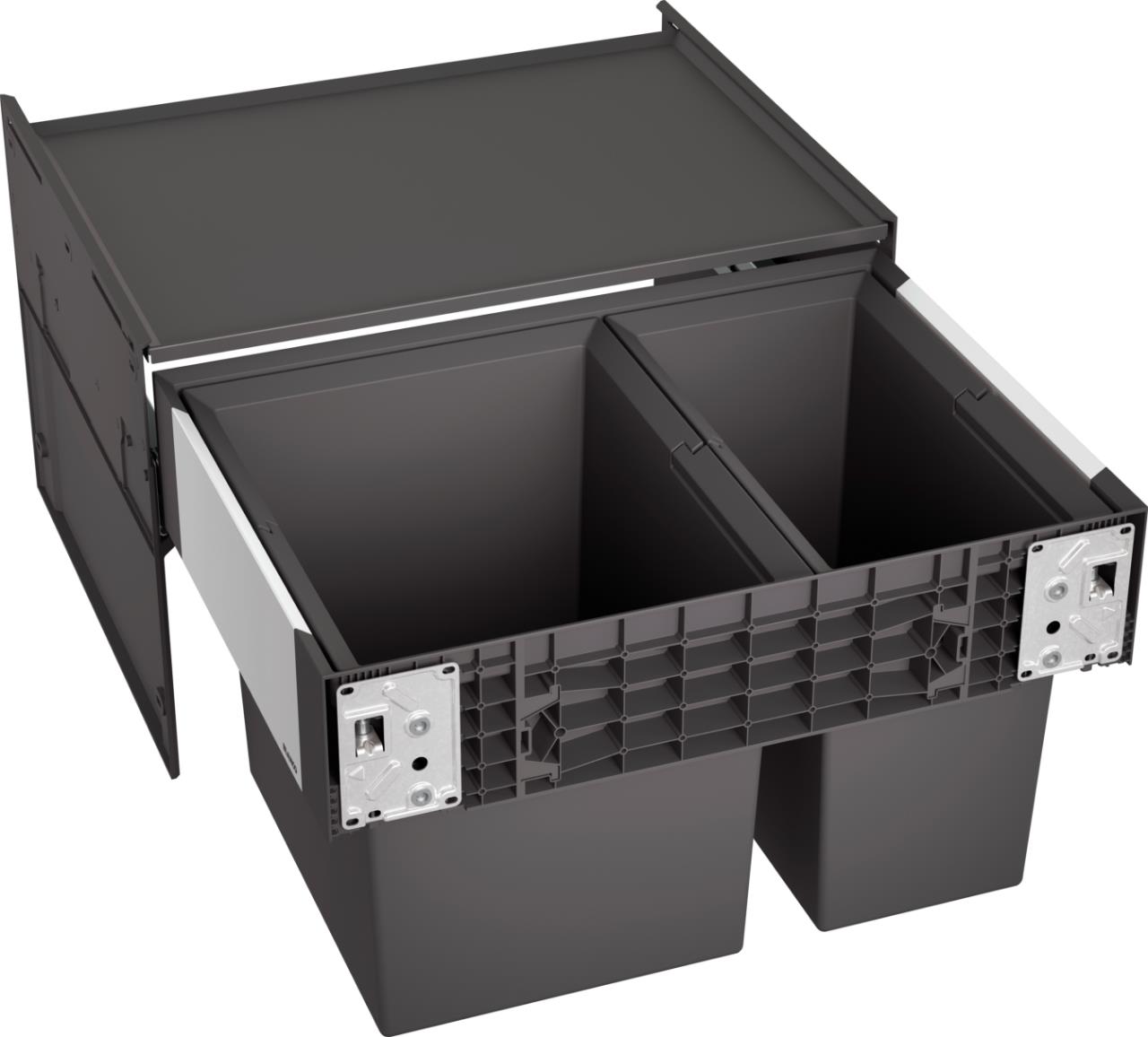 Obsah balení: rám s plným výsuvem a krytem, plastové nádoby a montážní příslušenství.
