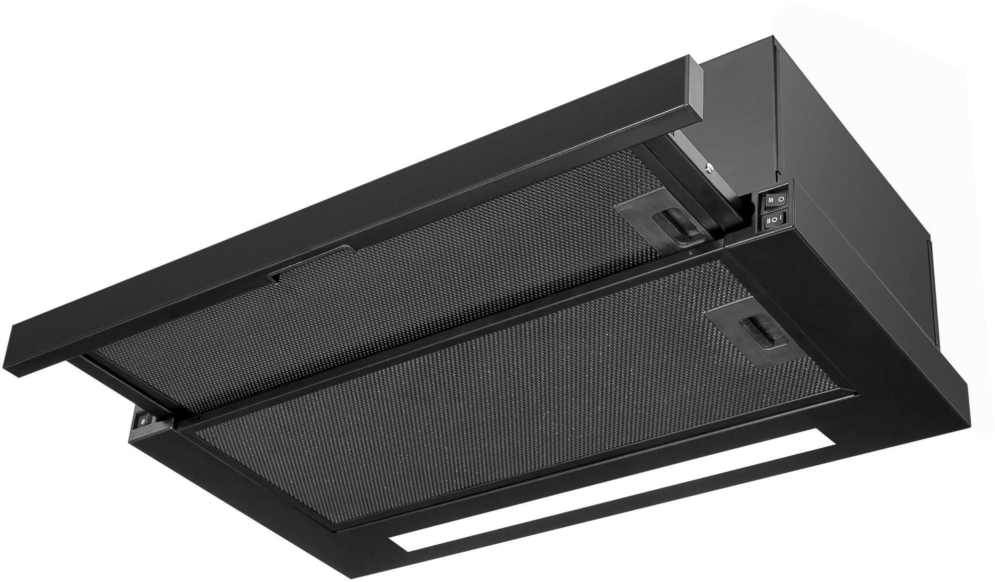 Tento odsavač par se vyznačuje moderním černým matným kovovým provedením, které dodává kuchyni sofistikovaný vzhled. Tlačítkové ovládání umožňuje snadné a intuitivní nastavení všech funkcí. Osvětlení zajišťuje jeden LED pásek, který poskytuje jasné a rovnoměrné světlo nad pracovní plochou, což usnadňuje přípravu jídel. Odsavač je dodáván se dvěma tukovými filtry, které jsou omyvatelné v myčce nádobí, a je možné dokoupit filtry z aktivního uhlíku pro režim recirkulace, což zajišťuje čistý vzduch i při opakovaném použití.