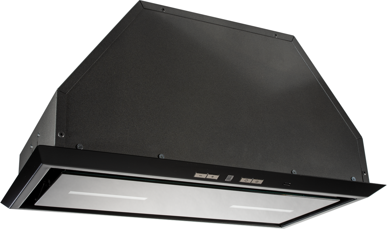 Plně vestavný odsavač v provedení černý matný kov + černé sklo, funkce HTH - automatické bezdrátové ovládání odsavače z varné desky, 2x LED pásek s možností regulace teploty světla, LED displej, elektronické ovládání s tlačítky Soft touch + dálkový ovladač, 3 stupně výkonu + režim BOOST, výkon odtahu ve standardním režimu 240 - 450 m3/h, výkon odtahu v režimu BOOST 620 m3/h, hlučnost ve standardním režimu 51-63 dB(A), hlučnost v režimu BOOST 68 dB(A), Roční spotřeba energie: 54,1 kWh, energetická třída B (energetický štítek B,B,A,E), tukový filtr (hliníkový) omyvatelný v myčce nádobí (součást balení), filtry z aktivního uhlíku pro režim recirkulace: 2 x FR-8705 (náhrada za FWND185, není součástí balení), rozměry (VxŠxH): 26,0 x 54,0 x 28,5 cm