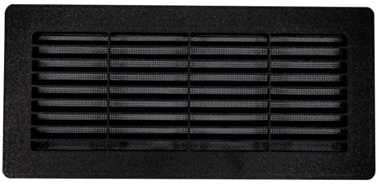 Mřížka černá 248x117 mm do plochého potrubí 220x90 mm, pro istalaci na vyústění odsavače doporučujeme odstranit síťku proti hmyzu.