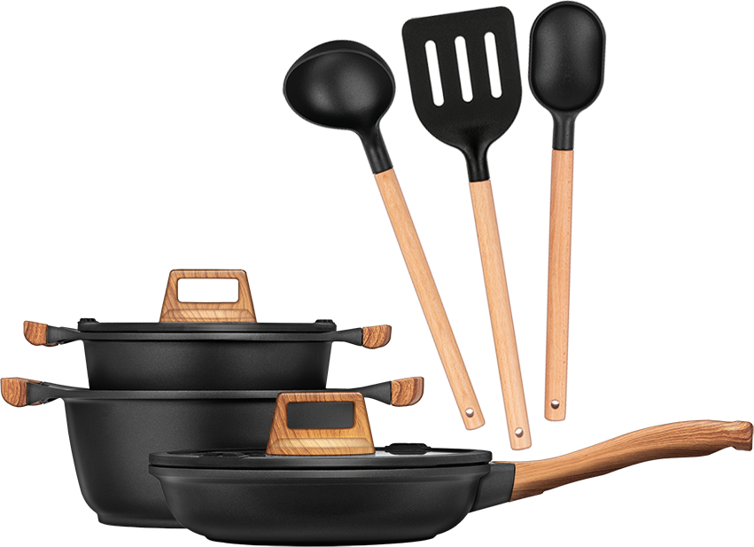 Sestava je doplněna 3 kusy náčiní - naběračka, obrácečka a lžíce